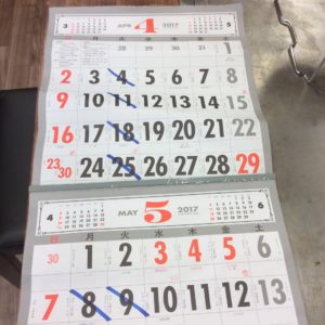 お店の地域特性として、休日、祭日、年末年始などの連休は、多くのお客様にご来店して頂いていますので、5月連休もその傾向があると考え、連休は休まず営業することにしました。代休として5月8日を頂き、定休日5月9日と合わせて2連休頂くことにしました。どうぞ宜しくお願い致します。