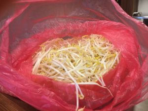 広島お好み焼に置いて、食感と焼き上げるときの水分調整の役割があると思っています。その理由は、収穫時期や環境によりキャベツ自体の水分が極端に少ない時があります。水分が少ないと、蒸し焼きに時間がかかったり、焦げ付く原因となり調理が難しくなります。そこで、その時は、もやしを多く加えること、水分調整が図れ、安定した焼きを行うことが可能となることです。。また、もやしも、大きく分けて2種類、太く水分の多い、「成田もやし」系と細く水分の少ない「細もやし」があります。。2種類とも試してみたのですが、「成田もやし」は水分が多すぎるのでお好みには不適合でした。やはり細もやしが一番相性が良いです。