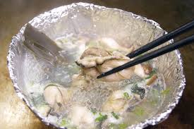 北海道産の昆布ベースのダシの中で、熱々の牡蠣をポン酢味で食べて、冬に最適な一品です。